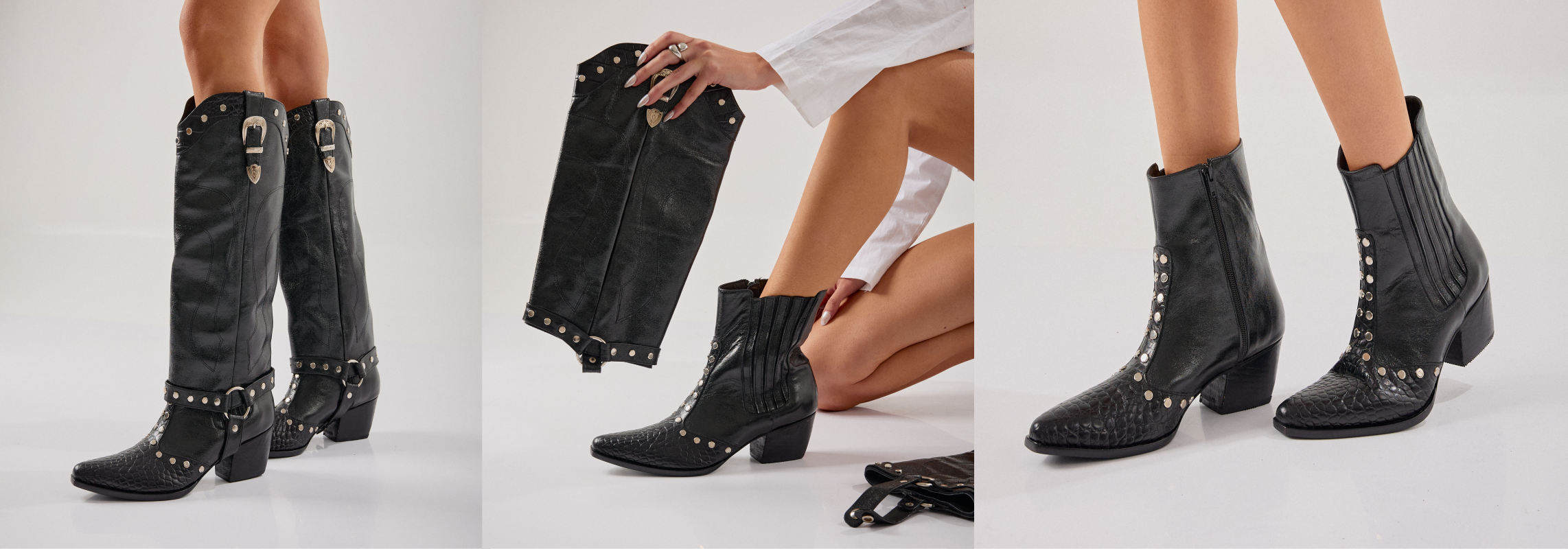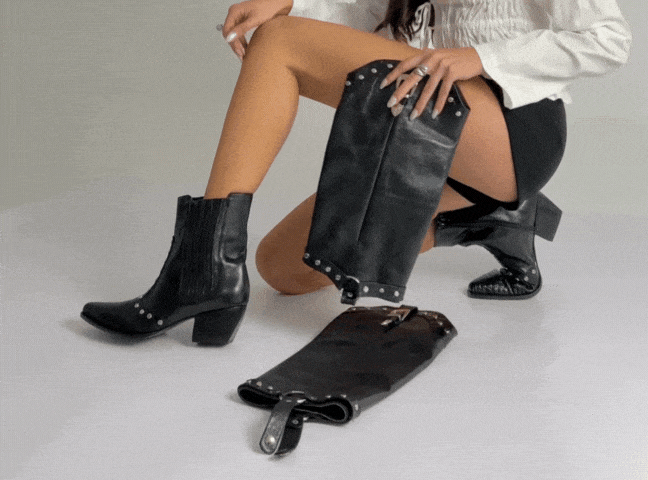 - Diseño 2 en 1: caña totalmente desmontable para usarlas como texanas o como botas altas según tu look.